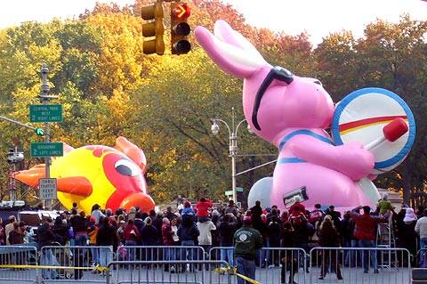 為什麼說是第一次和最後一次? 拜託, 11月底已經很冷了耶, 而且又要起一大早去佔位置, 想到就懶, 每年都哇哇叫要去要去, 叫了好多年都懶得動, 2007年感恩節當天的天氣真好, 暖和的不得了, 加上也沒打算去人家家裡過, 所以一早臨時決定去, 也算了了一個心願, 還好找到路邊免錢停車位, 走大約10個block就到Columbus Circle那兒.