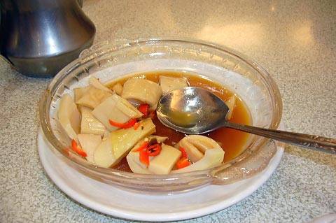 - 地瓜絲饅頭:加了Fancl青汁粉末在麵團, 鋪上地瓜絲捲起來切塊, 這個饅頭被簡先生嫌棄.