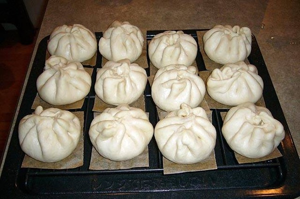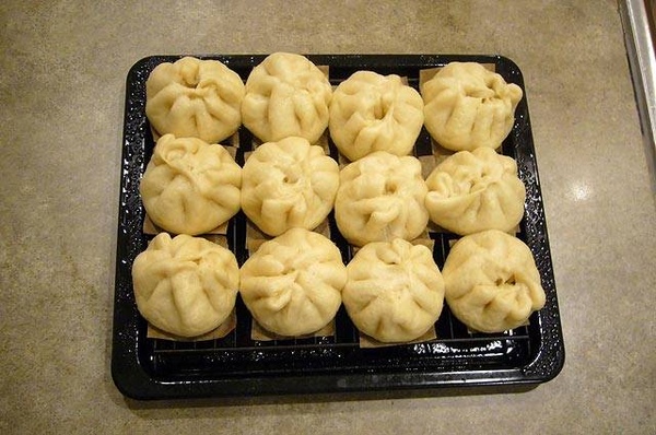 照片各是包好, 第二次發酵後, 蒸好, 最後一張沒用閃光燈, 所以色調不太一樣.